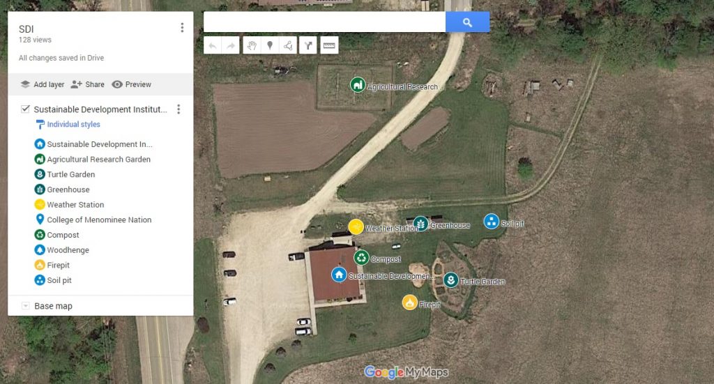 The Sustainable Development Institute, located on the beautiful College of Menominee Nation campus, is home to many on-site resources for those hoping to learn more about sustainability. In addition to our Food Sovereignty and Gardening initiatives, we also host a soil pit, learning path, outdoor classroom space, and working weather station.